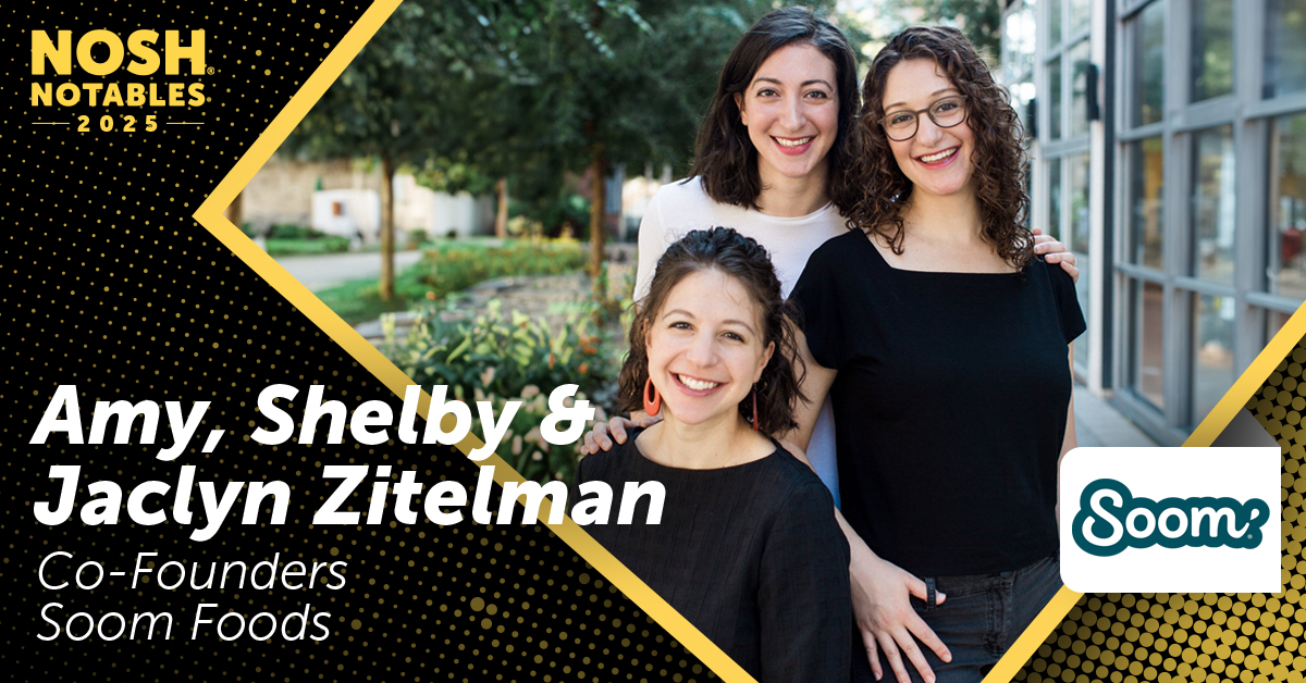 Twelve years ago, sisters Amy and Shelby Zitelman and Jaclyn Horvitz (née Zitelman) set out on a mission to make tahini – that smooth, creamy paste crafted with ground sesame seeds – a more popular ingredient in the American market. The fam has made significant progress toward that goal, landing Soom’s products in over 4,500 retailers nationwide, including Walmart, Publix and Whole Foods Market, among others, and expanding beyond jars into snackable bites. Additionally, the company has built a large foodservice presence through national and regional distributor partners like Dot Foods, Sysco and Chef’s Warehouse.